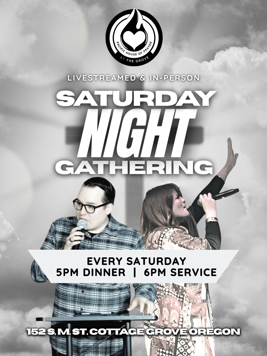 For Saturday nights, come at 5 PM for dinner. Worship begins at 6 PM. Feel free to arrive at either time.